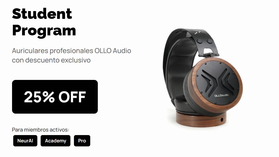 A partir de ahora, todos nuestros miembros de pago tendrán acceso a un descuento del 25% en los auriculares de estudio profesionales OLLO Audio, reconocidos en la industria por su calidad y precisión en el monitoreo de audio.